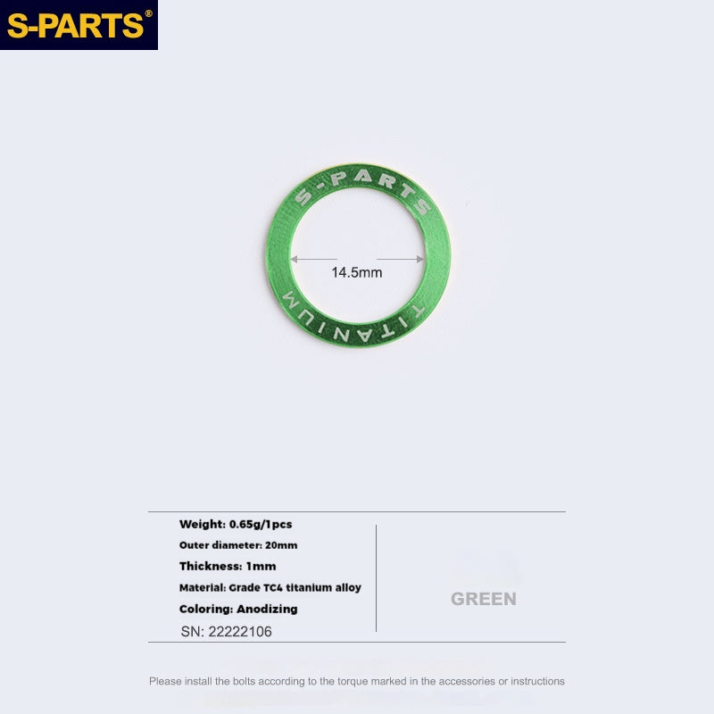 Upgrade your bike's performance and extend the life of your components with S-PARTS titanium alloy pedal flat washers. Ideal for mountain, road, and folding bikes.