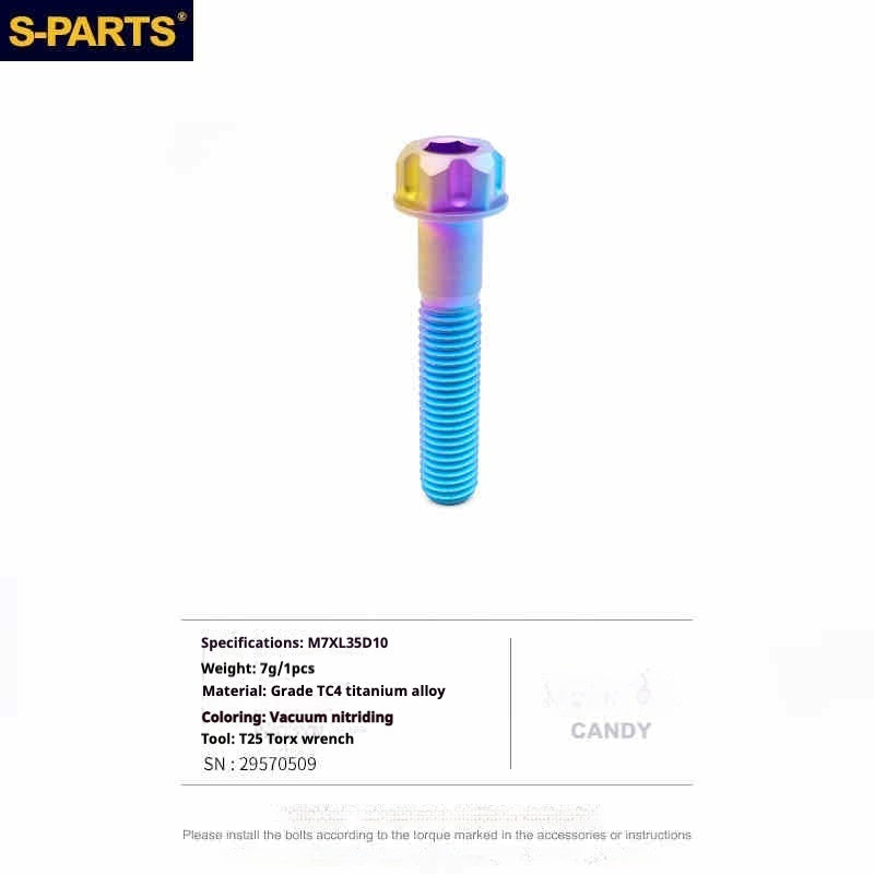 In addition to its performance advantages, the S-PARTS Titanium Screws also provide a stylish upgrade for your bike. With multiple vibrant color options—Gold, Titanium Black, Blue, Candy, Green, and Purple—you can personalize your bike while maintaining a sleek, professional look. The Anodizing Vacuum Nitriding not only increases the durability of the screws but also preserves their vibrant finish, making them an attractive addition to any high-performance bike.