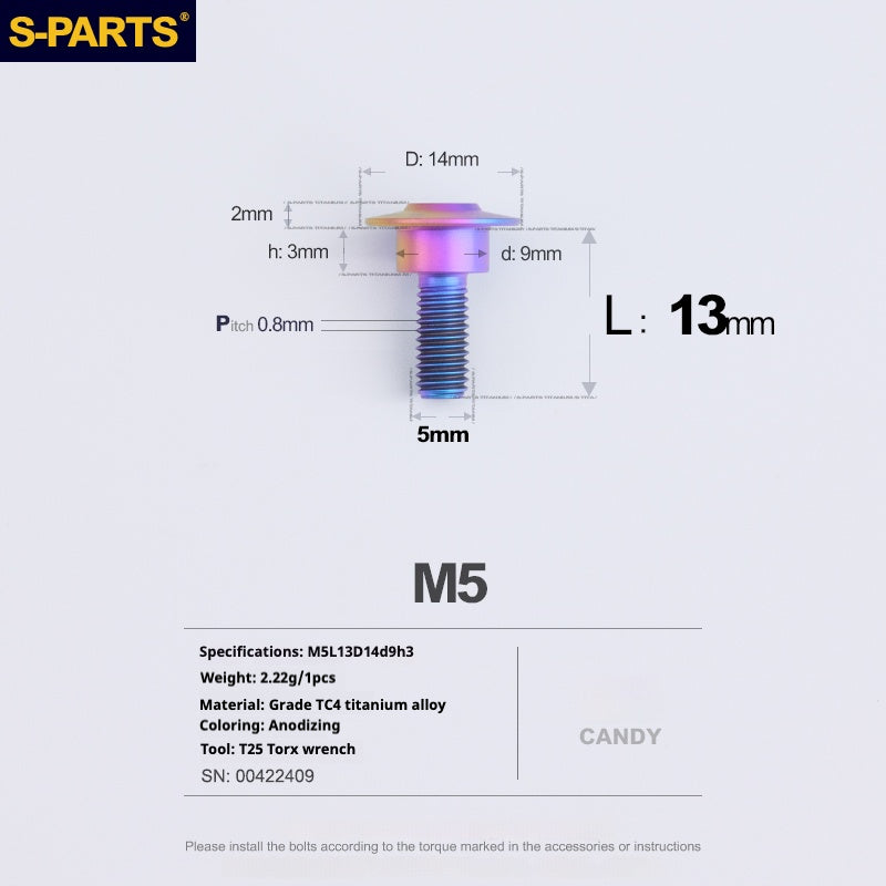 SPARTS A3 Umbrella Head Step Series M5 Candy Color Titanium Screws Motorcycle Auto