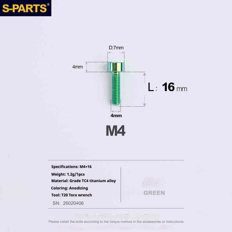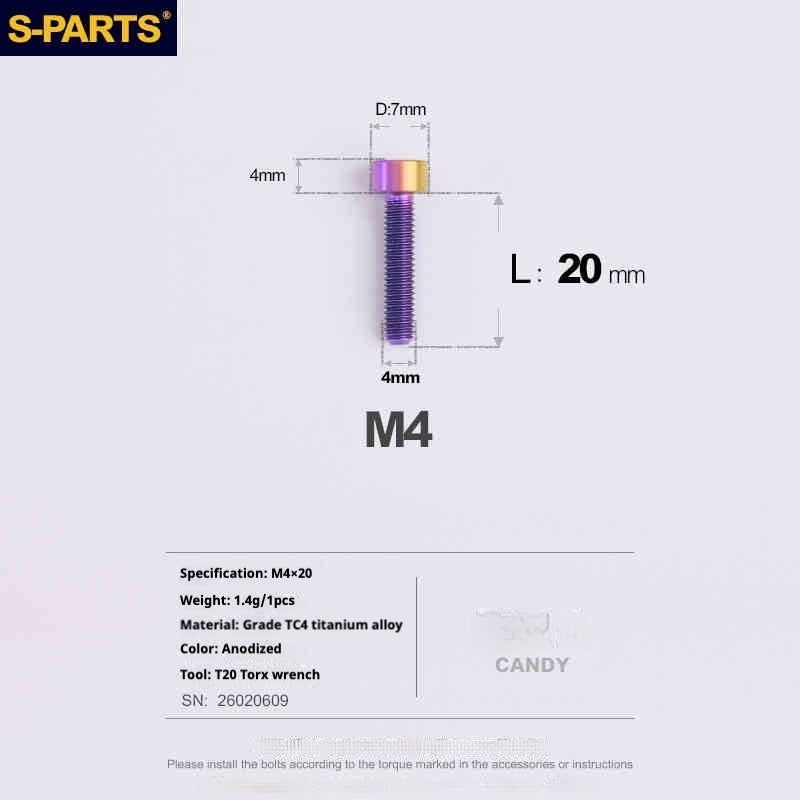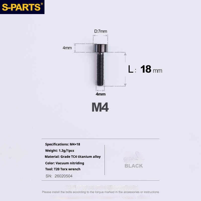 Introducing the SPARTS Column Head Series M4 L06-50mm Titanium Screws, engineered for top-tier performance and designed to exceed expectations in both functionality and style. These screws are the perfect upgrade for anyone looking to enhance the strength, durability, and aesthetics of their bike, motorcycle, or high-performance equipment.