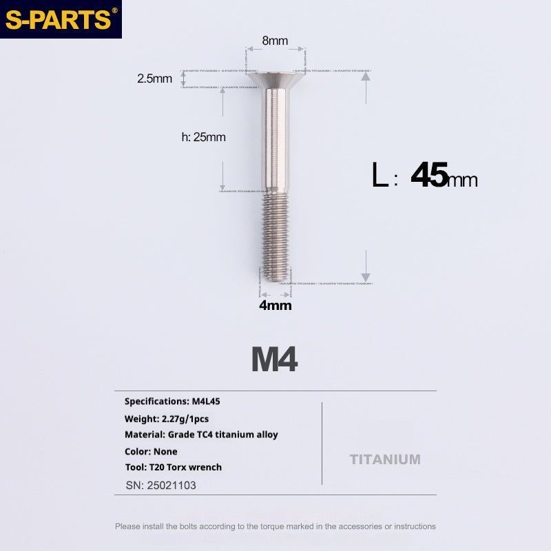 SPARTS Countersunk Head Series M4 L08-45mm Titanium Screws