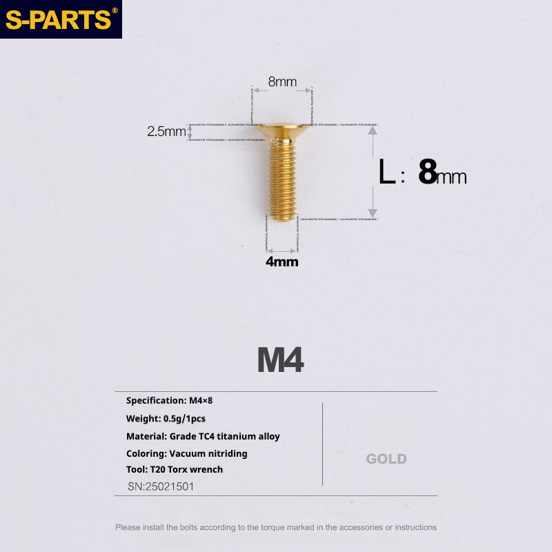Elevate your vehicle's performance and aesthetics with the SPARTS Countersunk Head Series M4 Titanium Screws. Designed for those who demand the best, these screws are perfect for both motorcycles 、cars and bike, offering a blend of strength, lightweight properties, and vibrant colors.