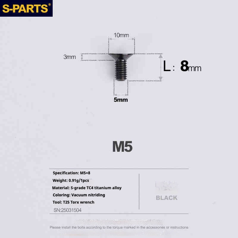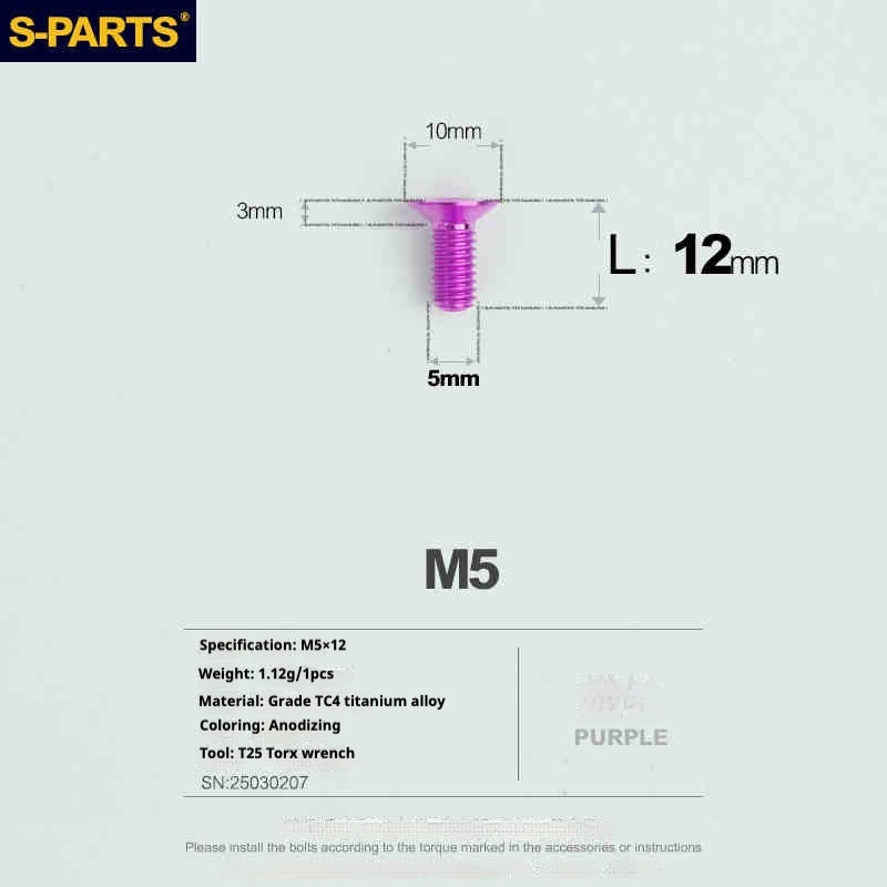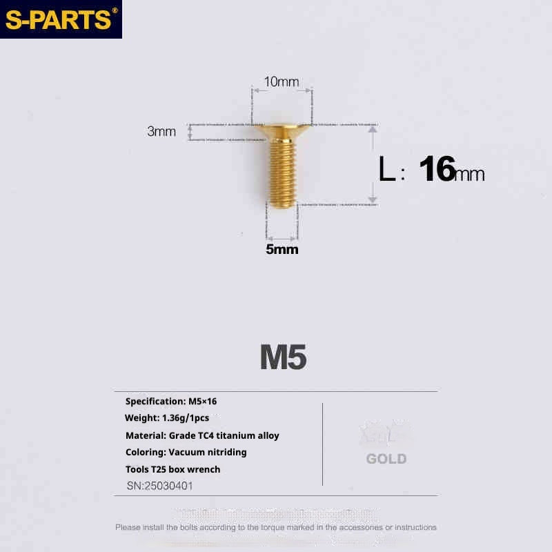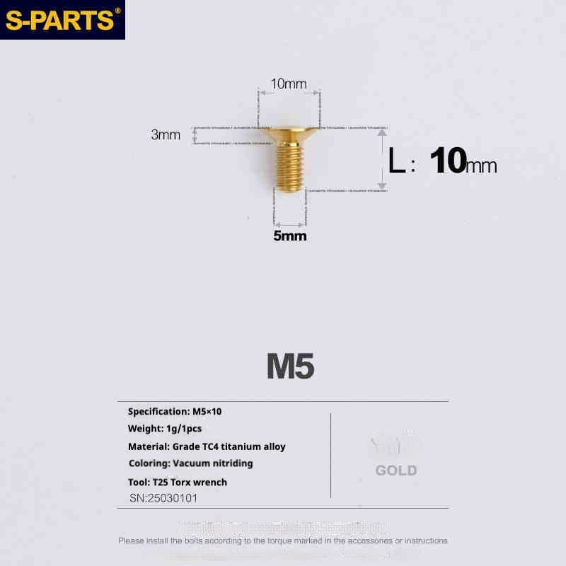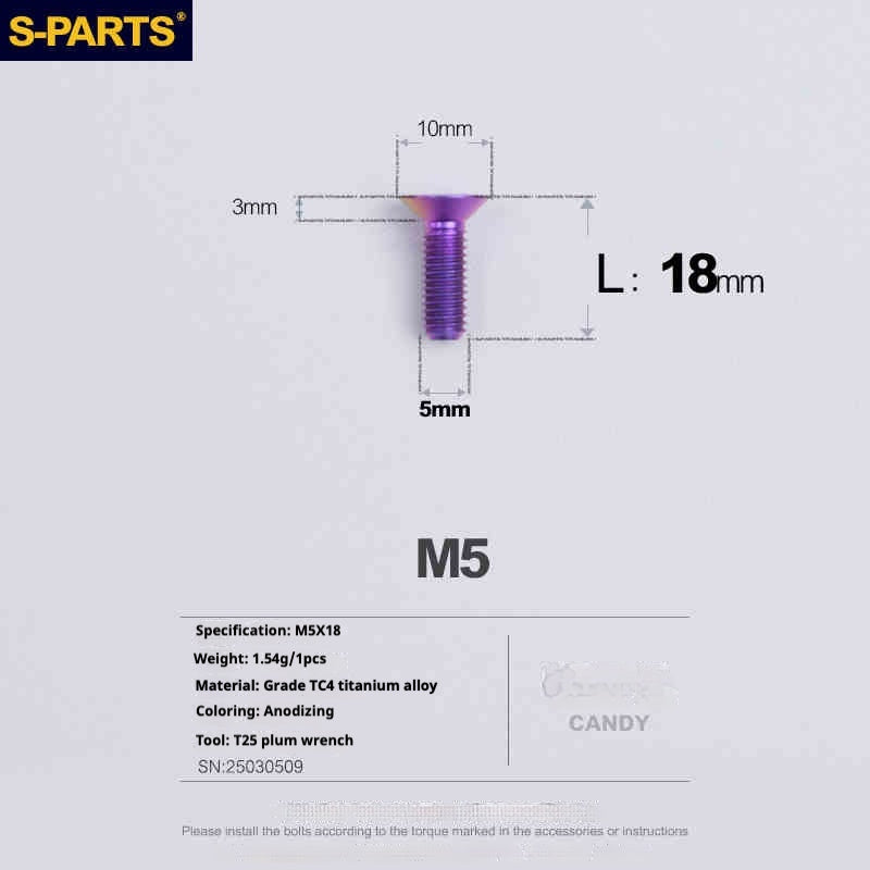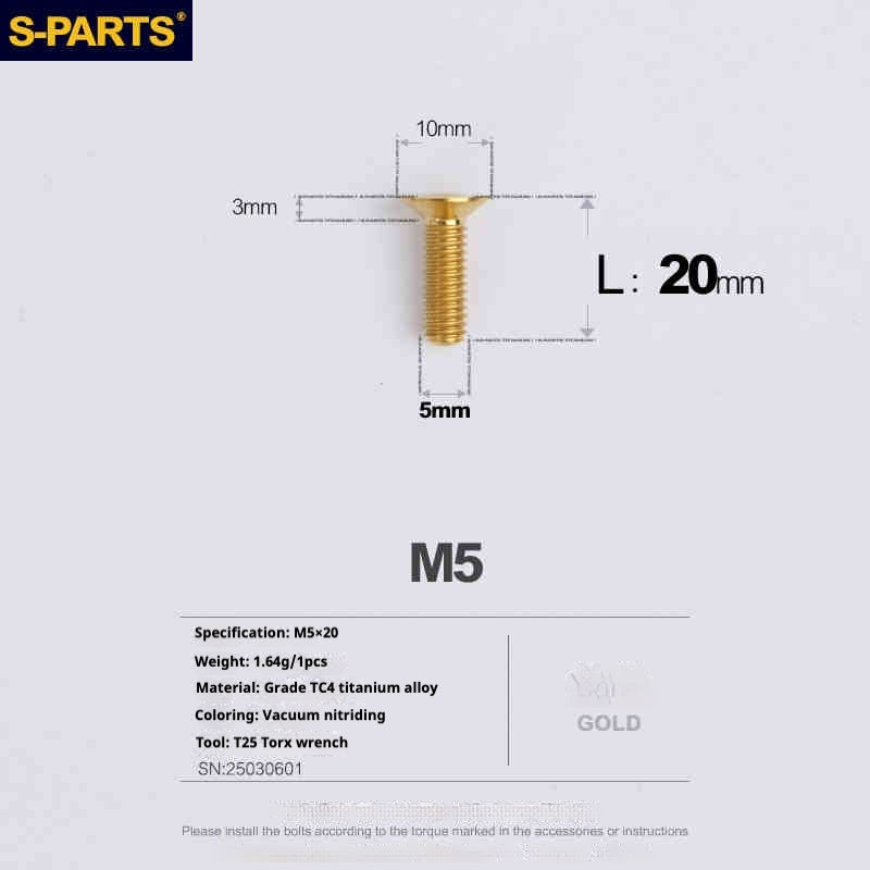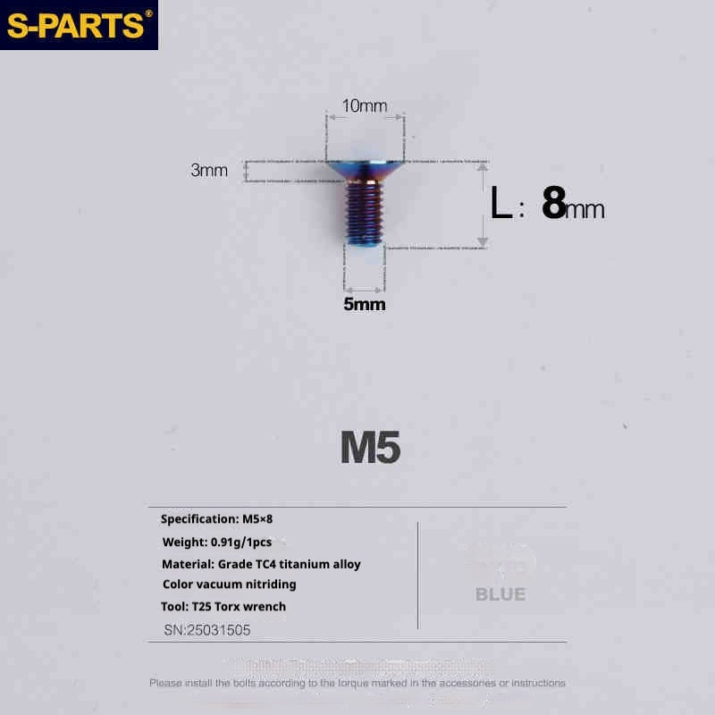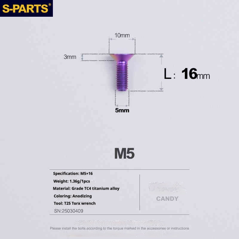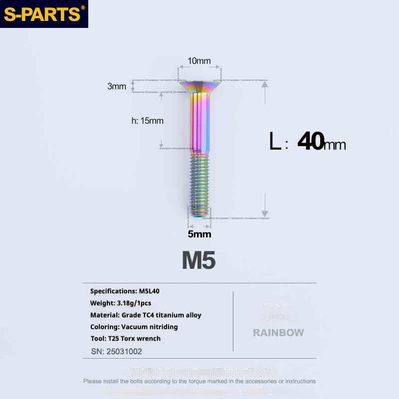 Introducing the SPARTS Countersunk Head Series M5 L06-55mm Titanium Screws, a premium choice for cyclists who demand strength, precision, and performance from every component. Available in a range of vibrant colors, including Gold, Rainbow, Titanium Black, Blue, Candy, Green, and Purple, these screws are enhanced with Anodizing Vacuum Nitriding technology for superior durability and a striking finish.