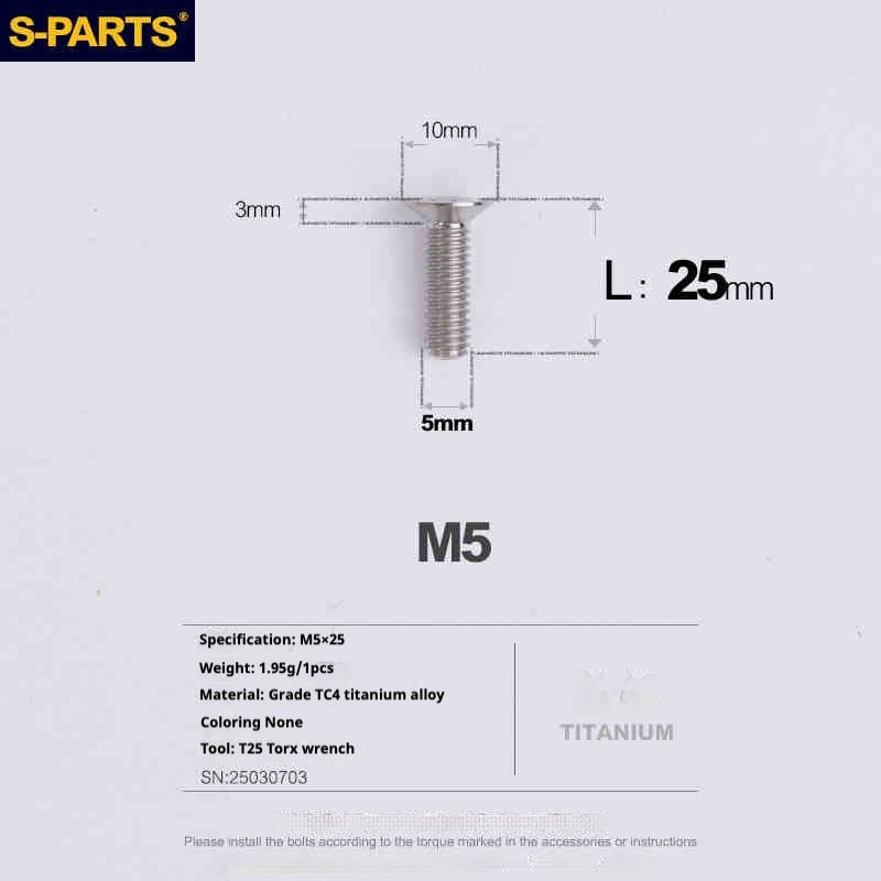 SPARTS Countersunk Head Series M5 L06-55mm Titanium Screws