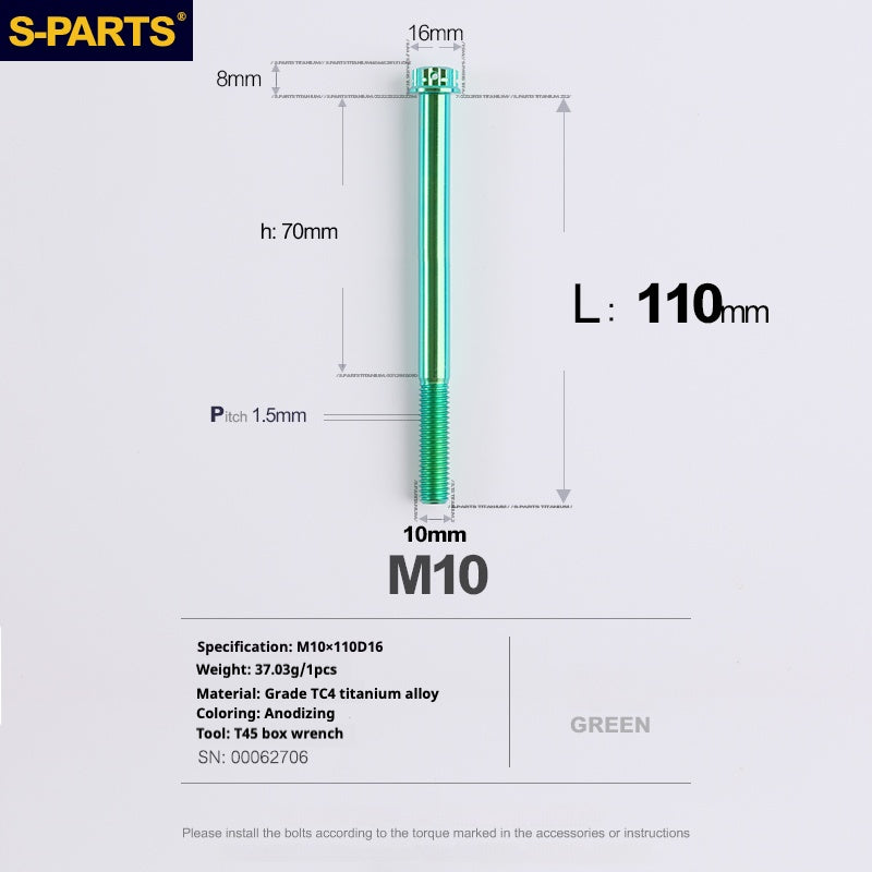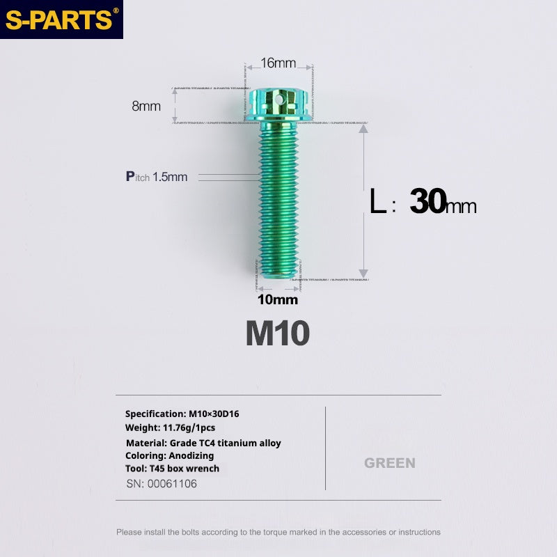 Elevate your equipment with the SPARTS Green A3 Series M10 L12-120mm Titanium Screws. Designed with precision and durability in mind, these screws feature a striking green finish and are crafted using advanced anodizing and vacuum nitriding techniques to ensure top-tier performance and aesthetics.