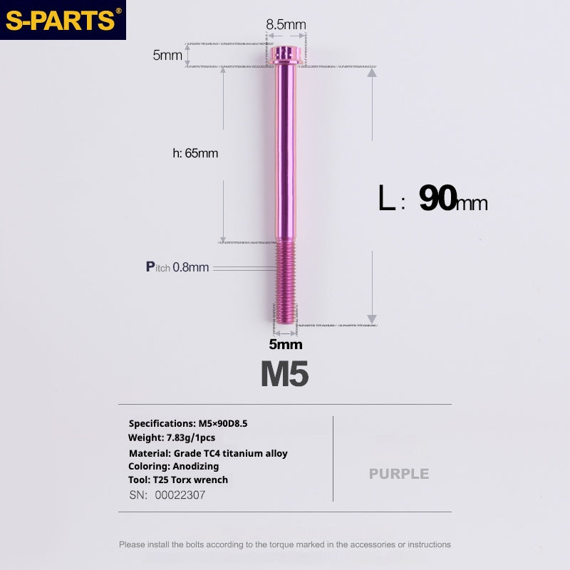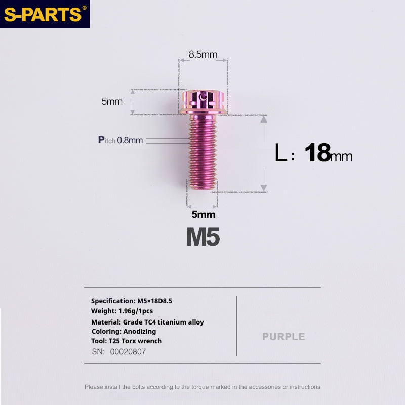 Enhance your equipment with the SPARTS Purple A3 Series M5 Titanium Screws, engineered for exceptional performance, durability, and a stylish appearance. These versatile screws are perfect for a wide range of applications, particularly bicycles, but also ideal for motorcycles and cars.